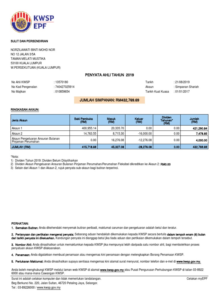 Kesilapan caruman pekerja bagi penyata caruman bulan 032018. Results for penyata caruman kwsp ahli translation from Malay to English. Anda boleh pilih untuk cetak penyata tersebut sebagai rujukan.
