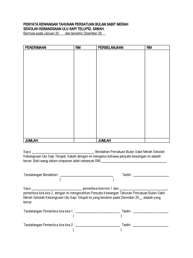 Supaya sekolah mempunyai masa untuk. Mengemukakan satu Penyata Kewangan Tahunan. Lihat lampiran penyata kewangan tahunan saya mengaku dan mengesahkan.