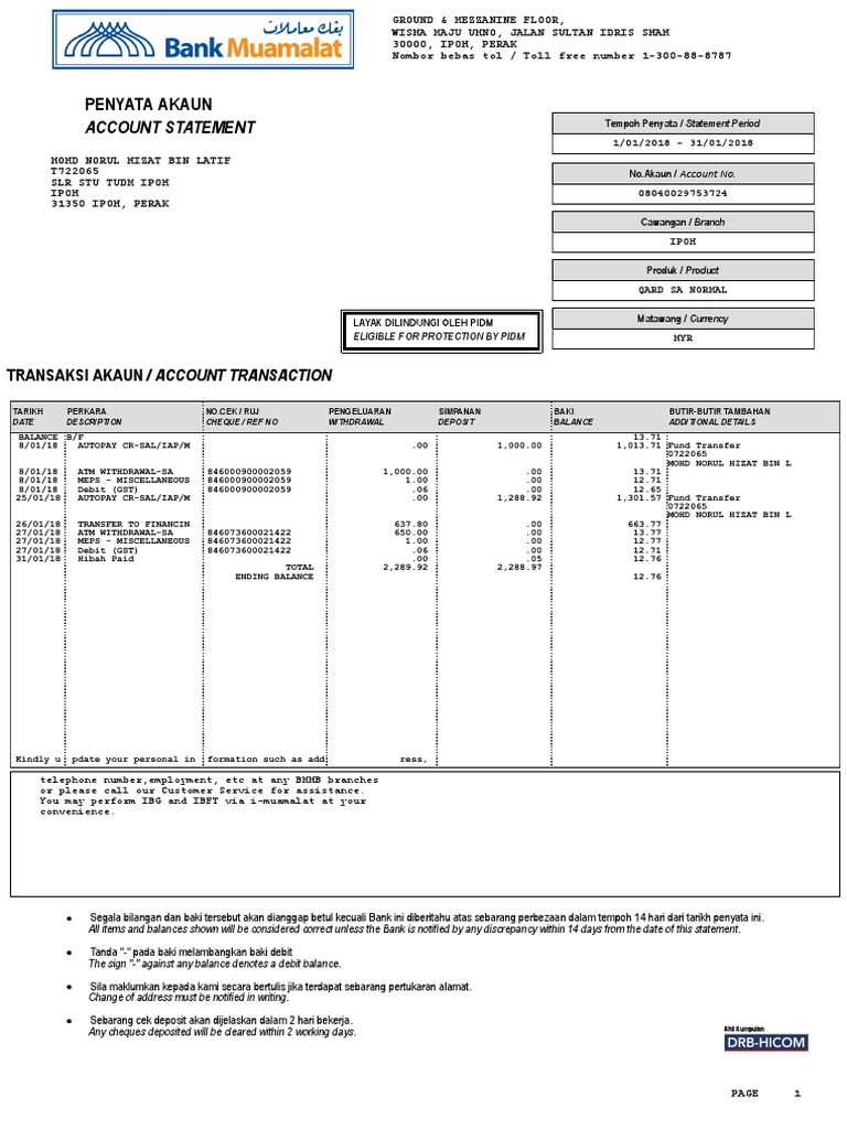 Account Statement Penyata Akaun Pdf Banking Technology Debit Card
