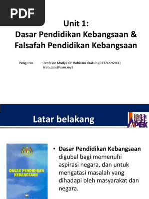 Laporan Rahman Talib ini kemudian dimaktubkan dalam Akta Pelajaran 1961. Persoalan besar yang dihadapi para pemimpin dan pendidik selepas Perang Dunia Kedua ialah untuk mencari formula bagi melahirkan masyarakat Malaysia yang bersatupadu yakni masyarakat majmuk yang mempunyai keazaman kesanggupan dan kesediaan untuk hidup bersama dalam keadaan. DASAR PENDIDIKAN KEBANGSAAN KANDUNGAN Tajuk Muka Surat Perutusan Ketua Pengarah Pelajaran Malaysia i Prakata Pengarah ii Falsafah Pendidikan Kebangsaan iii Misi Visi dan Matlamat Pendidikan Pendahuluan iv 10 Kurikulum Kebangsaan 1 20 Kokurikulum 4 30 Pendidikan Prasekolah 5 40 Pendidikan Rendah 7 50 Pendidikan Menengah 9 60.