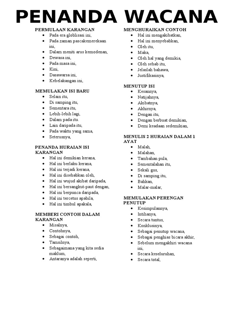 Hal ini berlaku kerana 4. Begitu juga dengan 10. Ahkir sekali iii Penanda wacana untuk menghuraikan isi karangan 1.