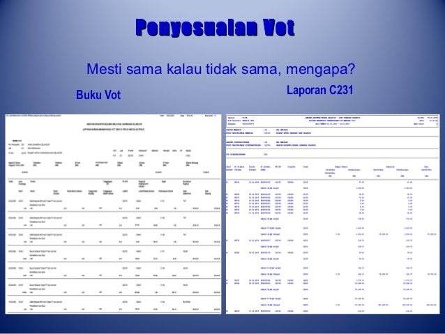 VotDana-ngkasan adalah dan betul dengan Bagi Persekitaran Elektronik dan Integrasi Sistem pastikan baki dalam laporan iGFMAS dan laporan sistem agensi adalah tepat dan betul dengan menyediakan Sijil Pengesahan Baki. Taklimat on-line penyediaan penyata penyesuaian aset alih. Laporan Bulanan Vot Pembangunan 43.