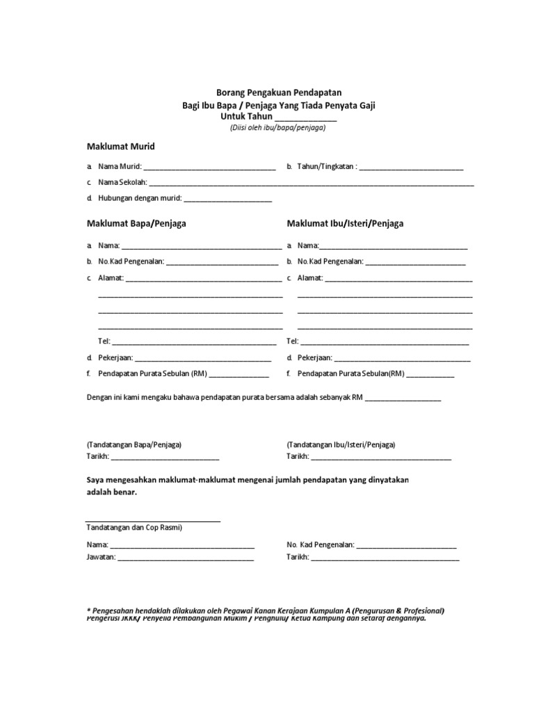 Borang Pengakuan Pendapatan Ibu Bapa Tiada Slip Gaji Pdf