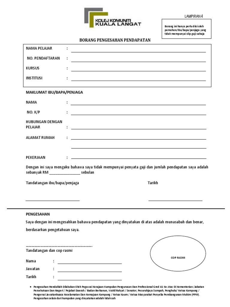 Moshims borang pengesahan pendapatan ibu bapa kpm lampiran b dokter andalan untuk dilengkapkan oleh. Kedudukan sebenar di Penyata Kewangan Kerajaan Persekutuan. Jenis Pertama Skim Bencana Pekerjaan dan Skim Keilatan Jenis Kedua Skim Bencana Pekerjaan Syer Majikan.